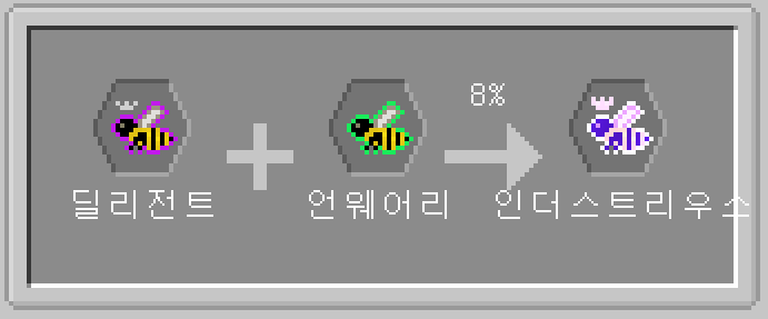 1단계와 2단계에서 각각 얻은 딜리전트와 언웨어리 벌을 교배시키면 인더스트리우스 벌이 나옵니다.