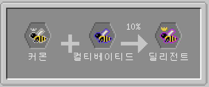 1단계에서 얻은 딜리전트 벌을 다시 컬티베이티드 벌과 교배시켜 언웨어리 벌을 얻습니다