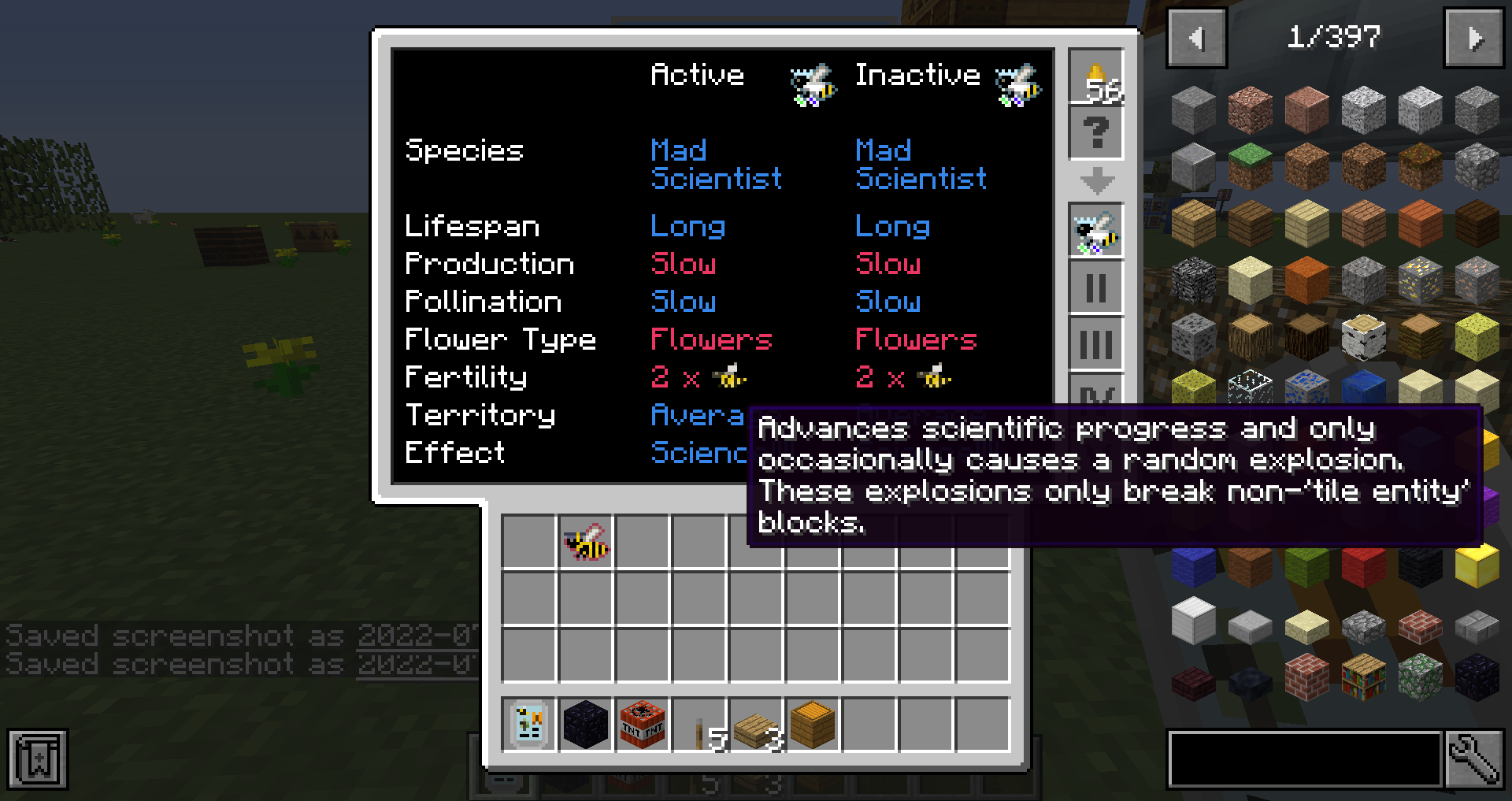 본 글은 마인크래프트 버전 - 1.12.2 Forestry - 5.8.2.422 Binnie 모드류 - 2.5.1.188 Career Bees - 1.0 MagicBees - 1.0 을 쓰고 있습니다. 알베리어를 만들고 싶어요! 근데 화분뭉치(Pollen)이 필요해요! 어..